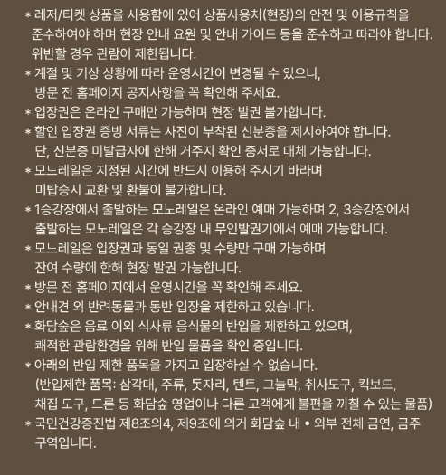 - 모노레일 포함 시: 입장권과 모노레일을 함께 예약했다면, 입장권 취소 시 모노레일도 같이 취소되니 확인하세요.