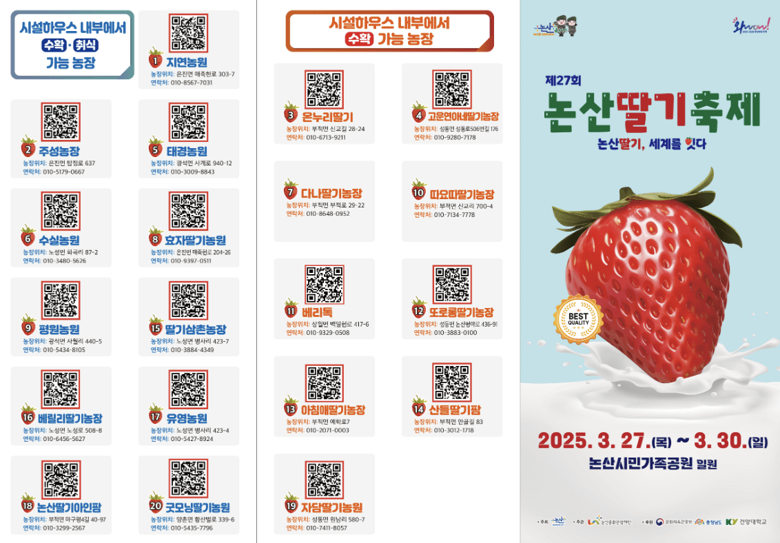 - 추가 재미: 딸기 디저트 존과 농산물 직거래 장터도 꼭 들러보세요!