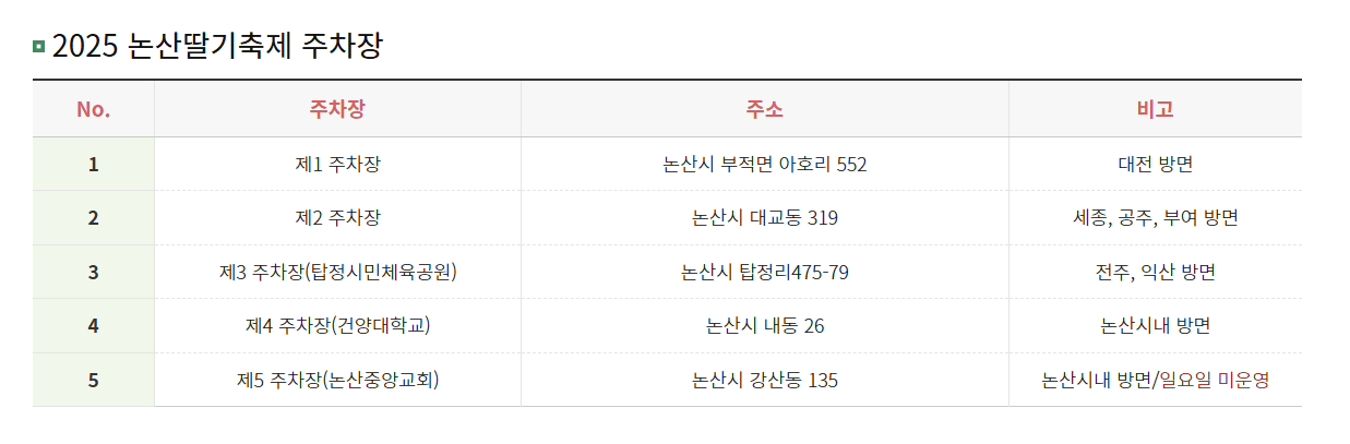 - 논산천 둔치 주차장: 축제장과 가까워서 제일 편리해요. 하지만 오전 10시 전 도착 추천!
